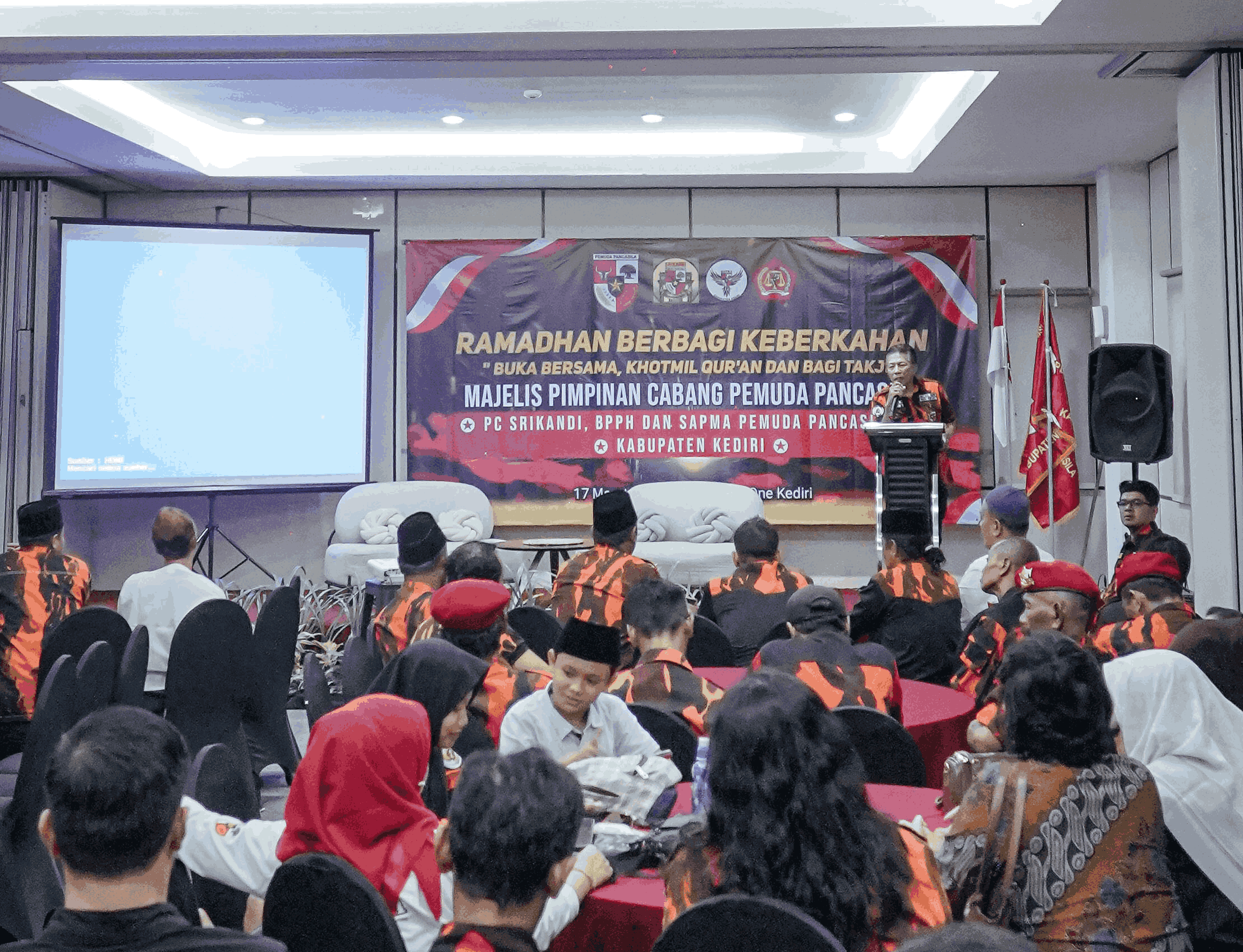 Kediri, potretjatim.id – Bertempat di Hotel Front One Kediri, Selasa (17/03/2026) di penghujung Ramadan 1447 H, ratusan kader MPC Pemuda Pancasila Kabupaten Kediri gelar acara bertajuk “Ramadan Kita: Ramadan Berkah dan Ceria Untuk Semua”. Tidak hanya sekedar buka puasa bersama dengan para kader dan tamu undangan saja, acara tersebut juga dirancang khusus untuk membentuk Kader Ceria, yaitu Kader Cerdas, Religius, dan Nasionalis.